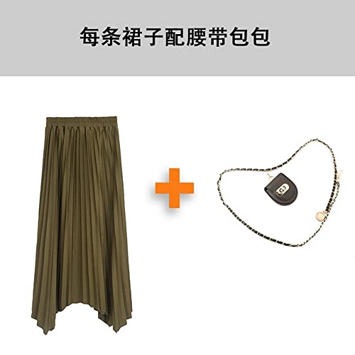 XIELH gonne Donna Invernali,Gonna Plissettata Irregolare Autunno Inverno in Puro Colore con Cintura Color caffè Scuro, Taglia Unica