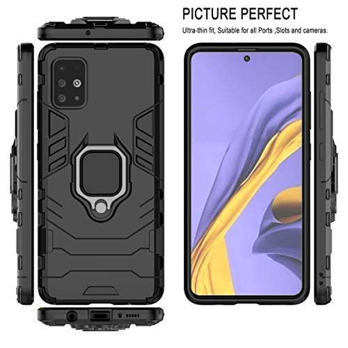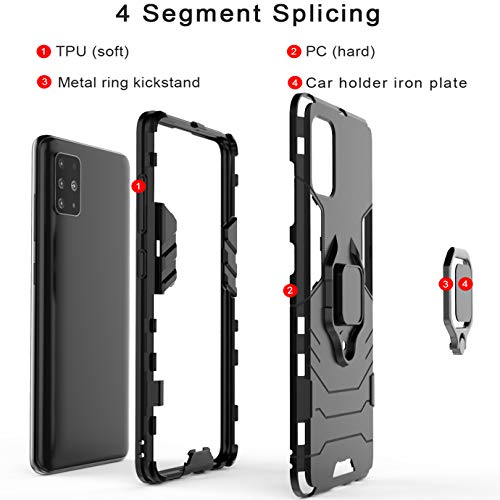 XIFAN Custodia per Samsung Galaxy A51, Nuovo [Robusto] Tattico Anello Metallico Cavalletto [Funziona con Il Supporto Magnetico per Auto] Cover Paraurti, Nero + 2 Pack Pellicola Protettiva