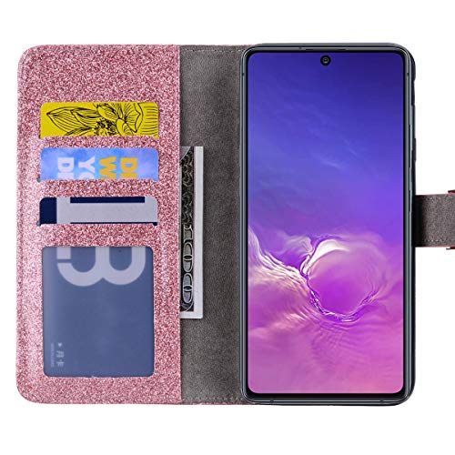 Xifanzi 3D Bling Flip Custodia Portafoglio per Samsung Galaxy A52 5G Glitter Premium Pelle PU Oro Rosa Case Caso Guscio Brillantini Brillante Wallet Shell 3D Rosa Caso Cover per Samsung Galaxy A52 5G