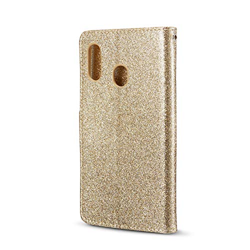 Xifanzi Brillantini Glitters Case for Samsung Galaxy A20E 360 Gradi Bling Bling Oro Shell Wallet PU 3D Amore Cuore Strass Cover Custodia Morbido Case Libro Leather Pelle per Samsung Galaxy A20E