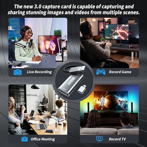 ⚡【Ampiamente utilizzato】La scheda di acquisizione video HDMI 4K può acquisire video e audio contemporaneamente. Questa scheda di acquisizione HDMI è adatta per l'acquisizione ad alta definizione, trasmissioni in diretta, sale conferenze, registrazione video, r