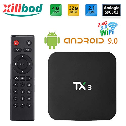 Xilibod Android 9.0 TV Box 4GB RAM/32GB ROM, S905X3 64-bit quad core ARM, G31™ MP2 GPU processor,H.265 Decoding 2.4G/5G dual-band Wifi Smart TV Box - Model No.: TX3 4GB 32GB
