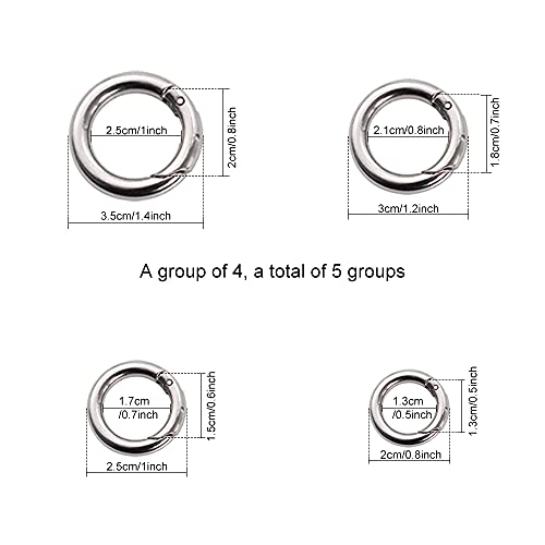 Quantità: la confezione include 20 portachiavi rotondi ad anello, ci sono 4 diverse misure: 20 mm, 25 mm, 30 mm, 35 mm, per soddisfare le diverse esigenze di utilizzo o la sostituzione quotidiana.