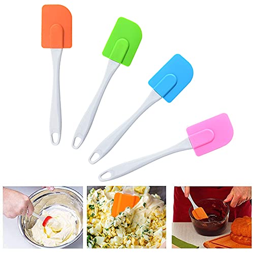 XINCHAO 4 Pezzi Spatole in Silicone Spatola per Dolci Spatola in Silicone Resistenti al Calore e 4 Pezzi Pennello Cucina Silicone, per Cottura, Cottura al Forno e mescolare (4 Colori)