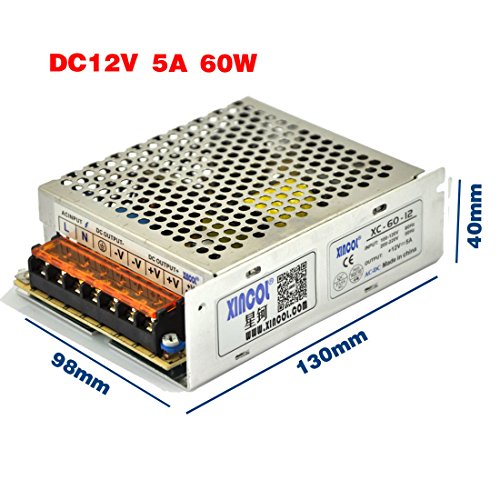 XINCOL LED Trasformatore di Alimentazione Interruttore AC 220/110V to DC 12V 5A 60W [Classe di efficienza energetica A]