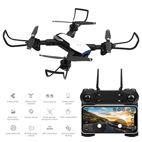 Xinde Drone RC Pieghevole, Elicottero Quadrirotore con Doppia Fotocamera da 5MP, Vista Verso Il Basso Telecamera WiFi Grandangolare 1080P Quadricottero, Flusso Luminoso Costante, Un Inizio Chiave,