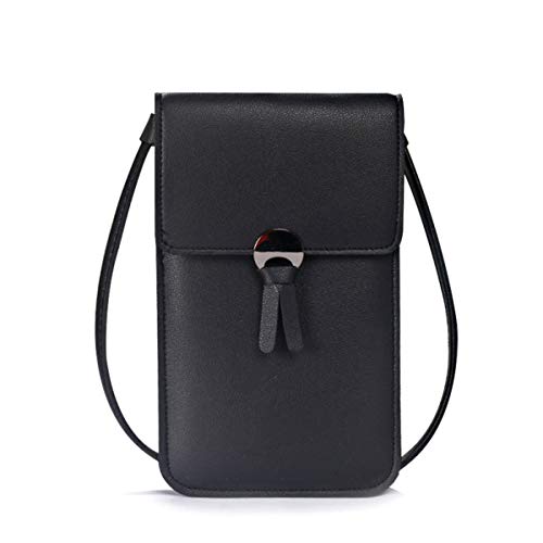 Xindemei Borsa a tracolla per telefono touch screen per ragazze da donna, mini borsa per cellulare in pelle PU con tracolla per borsa con finestra trasparente (Nero)