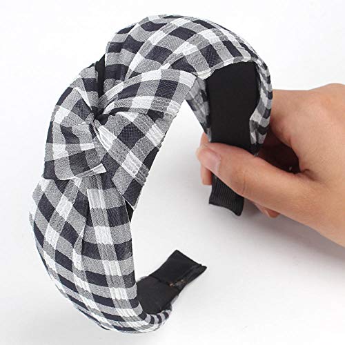 XINDUO Yoga Fasce Elastica per Capelli Ampia,Cerchietto Scozzese a Tesa Larga Semplice da Donna-Nero,Fasce in Spugna Cerchietto Bombato
