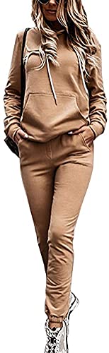 XINGENG Tute da Ginnastica 2 Pezzi Donna Completo Sportivo Felpa con Cappuccio Casual Pantaloni per Sportiva Jogging (Cachi,S)