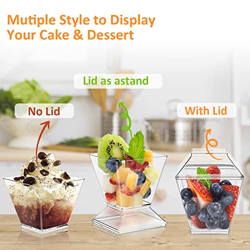 Xingsky 50 Pezzi Bicchieri da Dessert, 60ml/2oz Tazze da Dessert in Plastica, Riutilizzabili Bicchierini in Plastica Trasparente con 50 Coperchi e 50 Cucchiai per Mousse al Cioccolato Budino Dessert