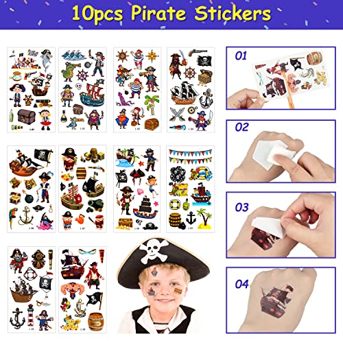Xingsky 52 Pezzi Compleanno Party Accessori Pirata, Pirati Tatuaggi Temporanei, Pirata Keychain, Pirata Anelli, Maschera, Bandana Pirata, Pirata Moustache, Festa Halloween Compleanno Carnevale