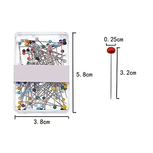 Dimensioni: il diametro della testa di vetro è di 0,25 cm. La lunghezza dell'ago è di 3,2 cm. Scatola da 100 pezzi bianca. Scatola colorata da 100 pezzi.