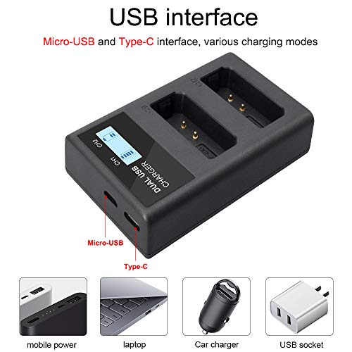 XINGWEI Confezione da 2 Batterie di Ricambio LP-E10 e Display LCD Caricatore Doppio USB per Canon EOS Rebel T3, T5, T6, Kiss X50, Kiss X70, EOS 1100D, EOS 1200D, EOS 1300D Fotocamera Digitale