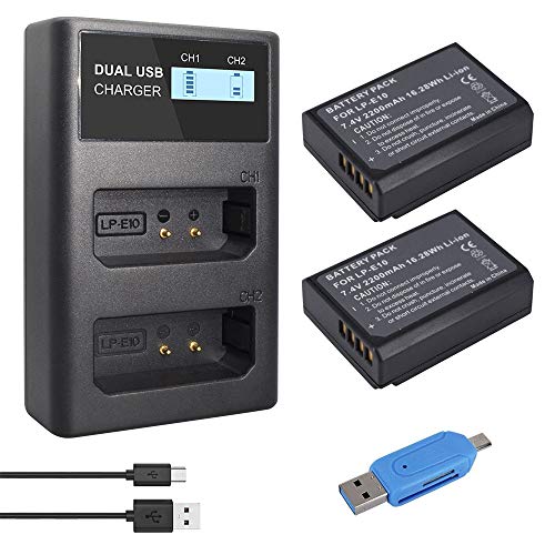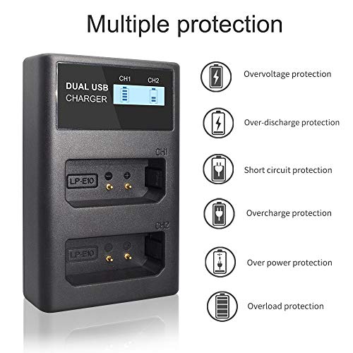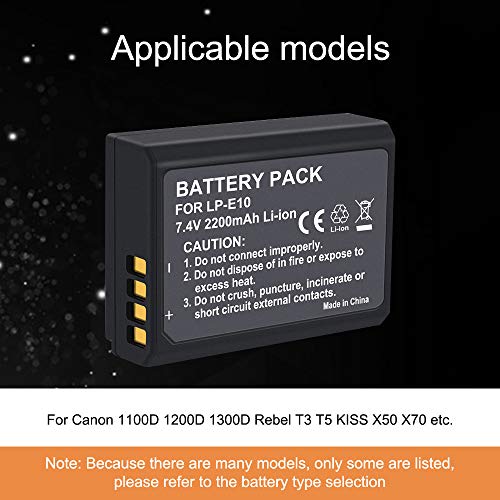 Batteria di agli ioni di litio LP-E10 da 7,4 V, 2200 mAh, professionale per batteria Canon LP-E10. Celle agli ioni di litio premium per una maggiore della batteria senza effetto memoria. Le batterie possono essere caricate o scaricate in qualsiasi momento senza danni.