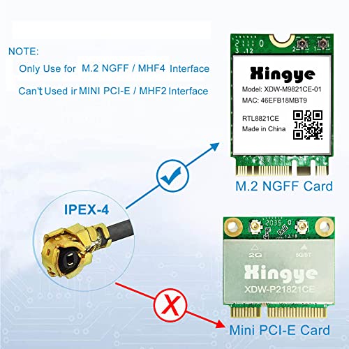 Das Paket beinhaltet: 2 x 5 dBi Dualband-Antenna + 2 x 7,48 pollici IPEX 4 auf RP-SMA-Pigtail-Kabel, per M.2 (NGFF)-Schnittstelle, nicht für MINI PCIE-Schnittstelle verwenden.