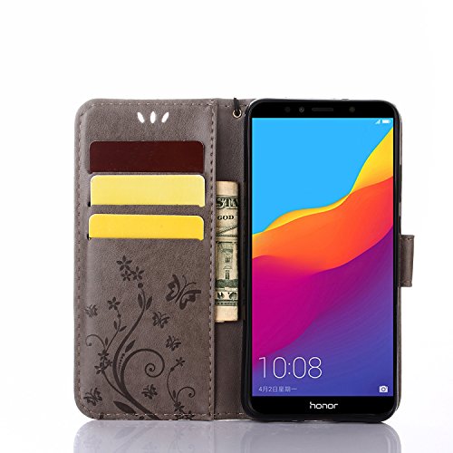 XINKO Huawei Honor 7A Wallet Cover, Anti-graffio - Retro Flowers Design Pattern Custodia in Pelle con Wallet Case Cover per Huawei Honor 7A (Grigio)