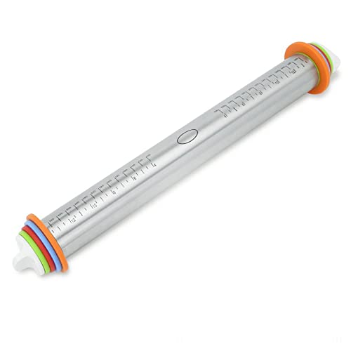 PERFETTO PERFETTO: Include mattarello in acciaio inossidabile 304, 4 paia di anelli in silicone di diverso colore. Sarà un assistente di cottura ideale nella tua cucina, rendendo la cottura e la cottura più facili e divertenti. È anche un regalo meraviglioso per gli amanti della cottura.