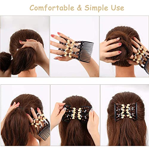 Xinlon 4 Pezzi Magic Hair Comb, Pettine Elastico Doppio, Perline Magiche per Pettine per Capelli, Fermagli a Pettine Magico Elastici, Fermagli a Pettine Doppia, Doppio Pettine Clip per Donne Ragazze