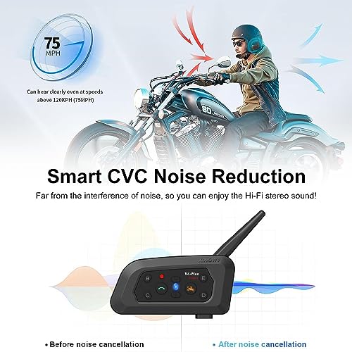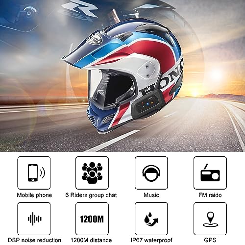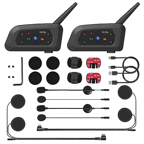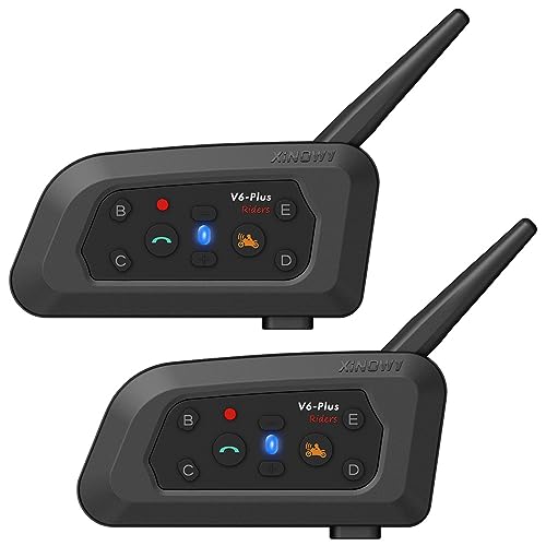 XiNOWY V6 Plus Interfono Moto Doppio Sport Bluetooth da Casco per Comunicazione in Moto, Fino a 6 Motociclisti, Distanza 1.2Km, Autonomia 320 Ore, MP3, GPS, Impermeabile, Universale