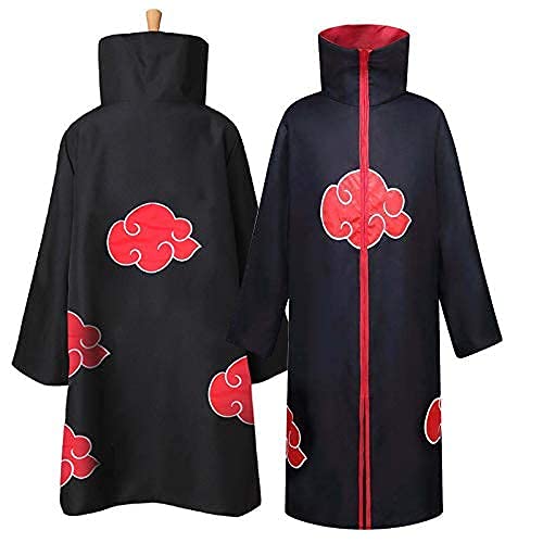 Regalo: cappotto lungo Akatsuki Cosplay con collo alto, fodera rossa e chiusura lampo. Regalo perfetto e indispensabile per gli appassionati di anime.
