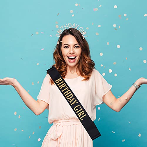 Xinstroe Corona di Cristallo Tiara, Compleanno Fascia con Fusciacca Compleanno Copricapo per Donna Ragazza Decorazioni Festa di Compleanno, Cerchietto Birthday Girl