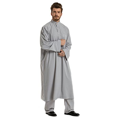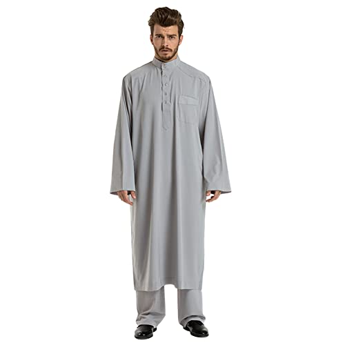 Xinvivion Set da 2 Pezzi da Uomo Musulmano Abiti - Islamico Arabo Caftano Sciolto Manica Lunga Jubba Thobe Vestiti Etnici Mediorientali