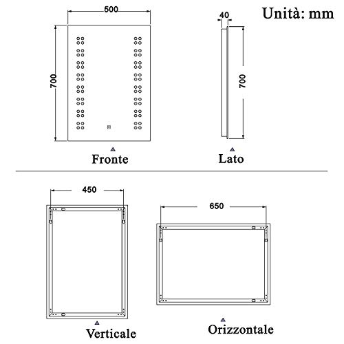 Xinyang 50x70 cmLampada LED a risparmio energetico da parete a specchio da bagno con luce bianca fredda 6400k antiappannamento e accessori impermeabili IP44