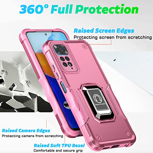 XINYEXIN Armor Cover per Xiaomi Redmi Note 11 4G, Redmi Note 11S Custodia Antiurto Grado Militare [Design Antiscivolo] con Anello Supporto Hard PC y TPU Bumper Silicone Custodie - Rosa