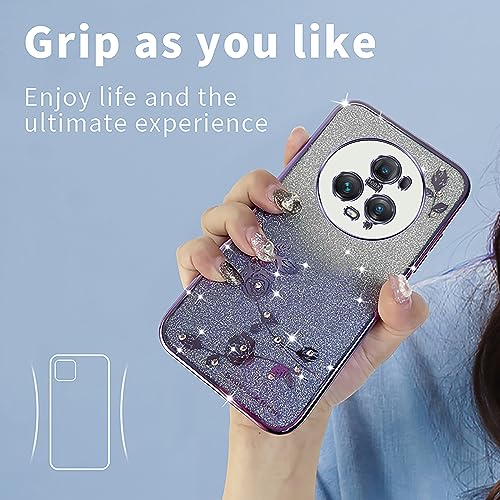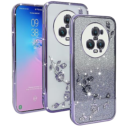 XINYEXIN Cover Glitter per Honor Magic 5 Pro, Custodia Bling Brilla Ultrasottile Trasparente Antiurto, Carino Scintillante con Donne e Ragazze - Viola