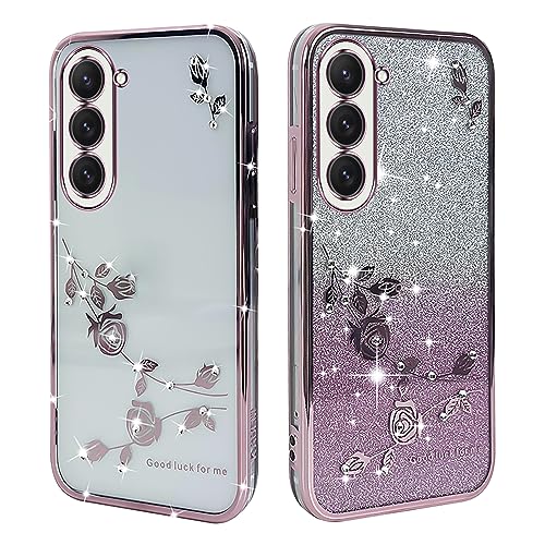 XINYEXIN Cover Glitter per Samsung Galaxy S23 5G, Custodia Bling Brilla Ultrasottile Trasparente Antiurto, Carino Scintillante con Donne e Ragazze - Oro rosa