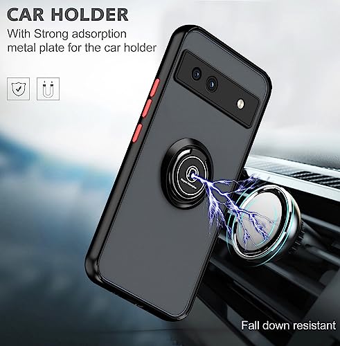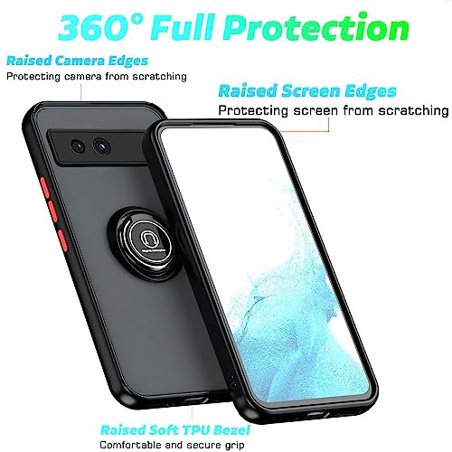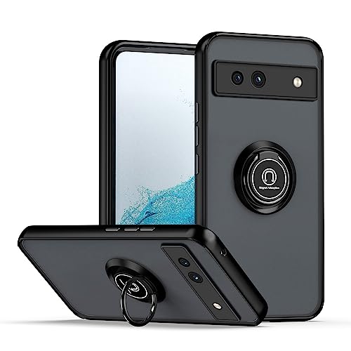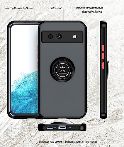 XINYEXIN Cover per Google Pixel 7a, Traslucida Custodia Antiurto Antigraffio con Supporto Anello a 360°, PC + TPU Bumper Case - Nero