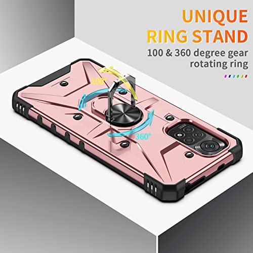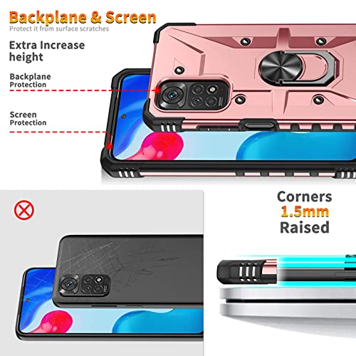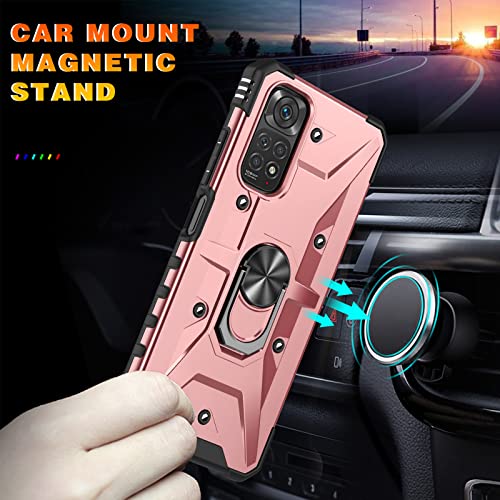 XINYEXIN Cover per Xiaomi Redmi Note 11 4G / Redmi Note 11S 4G Custodia con Anello Supporto Rotazione di 360 Gradi, Doppia Protezione Militare Antiurto Armor Case - Oro rosa
