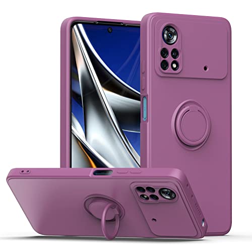 XINYEXIN Silicone Liquido Cover per Xiaomi Poco X4 PRO 5G (6.67"), Custodia Antiurto AntiGraffio con Supporto Anello a 360° Cordino Slim Silicone Case - Sakura Purple