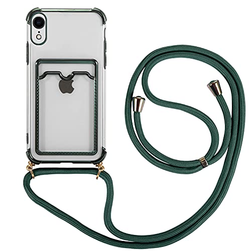 Xinyunew Collana Porta Cellulare Compatibile con Custodia per iPhone XR-Custodia da Collo per Smartphone,Cover con Cordoncino da Indossare Slot per Schede -Verde Scuro