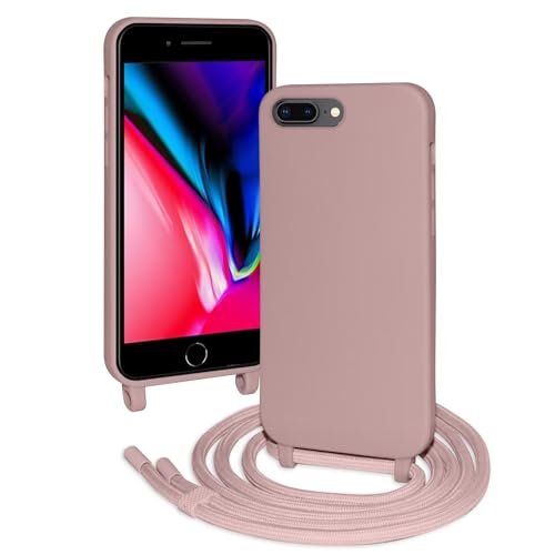 Xinyunew Cover per iPhone 6 Plus/iPhone 7 Plus/iPhone 8 Plus con Cordino, Custodia con Laccio Collana Tracolla Collo Liquido Silicone Antiurto TPU Antiurto AntiGraffio Case - Colore Lotus