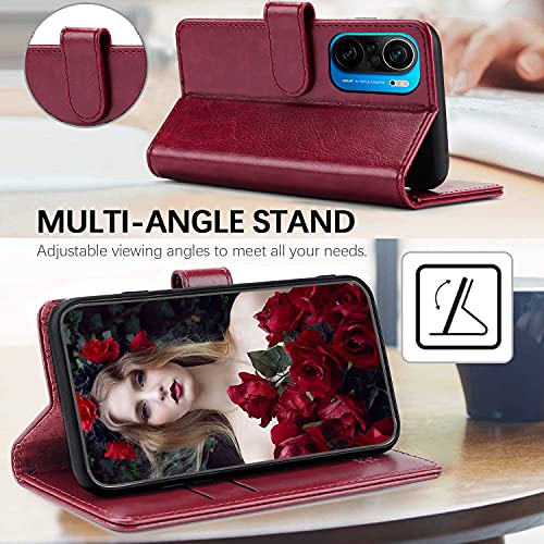 Xinyunew Custodia per Xiaomi Poco F3 5G, Cover Xiaomi Poco F3 5G Libro, Custodia Xiaomi Poco F3 5G Pelle, Flip Cover per Xiaomi Poco F3 5G Portafoglio, Rosso