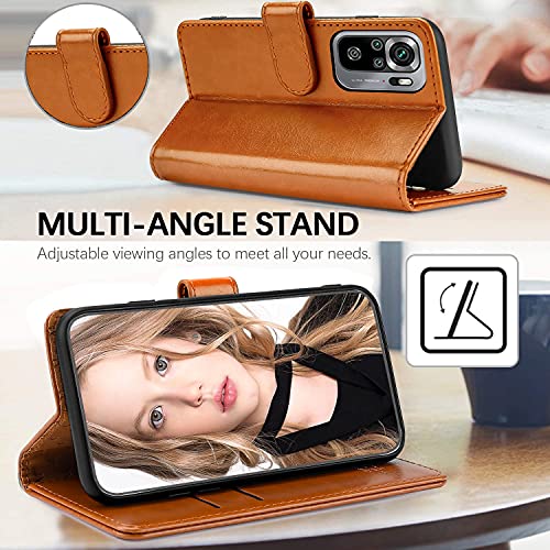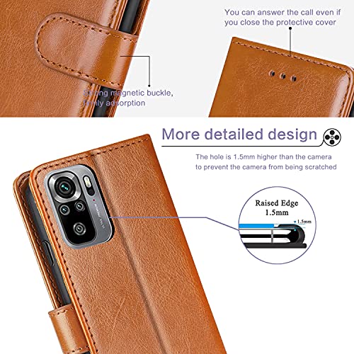 Xinyunew Custodia per Xiaomi Redmi Note 10 4G/Note 10S, Cover Redmi Note 10 4G Libro, Custodia Xiaomi Redmi Note 10 4G/Note 10S Pelle, Flip Cover per Redmi Note 10 4G/Note 10S Portafoglio, Marrone