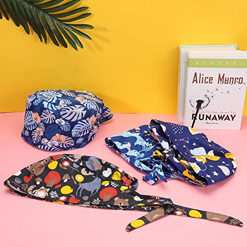 Xinzistar 4 Pezzi Cuffia Chirurgica Cappello Cotone Elastico Regolabil Bouffant Turbante Cappelli Cappello Medico per Unisex Donna Uomo Infermiere Forniture Cura Personale