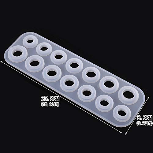 Varie Dimensioni - Questo stampo per anelli in silicone contiene 14 fori per anelli in 7 diverse dimensioni, presenta forme rotonde e romboidali, che possono soddisfare le tue molteplici creazioni artigianali. Si prega di notare che attendere che la resina si asciughi per 24 ore e sformata. Se non si asciuga e si sforma con la forza si danneggia lo stampo.