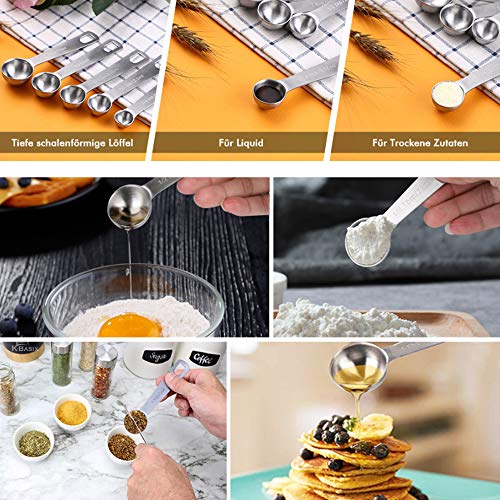 XIOJAE Misurini in Acciaio Measuring Spoons Precisa Measuring Spoons Cucchiaio Righello Misurazione Misurino da caffè Cucchiaino Inossidabile per Cucinare Misurando Liquidi Solidi 6 Pezzi