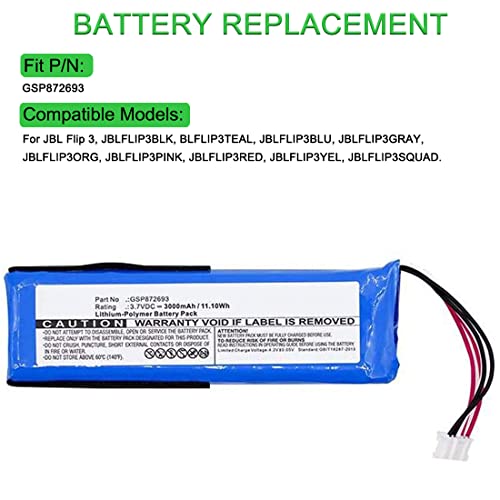 XITAIAN 3.7V 3000mAh GSP872693 Batteria di Ricambio per JBL Flip 3 Splashproof Portable Bluetooth Speaker
