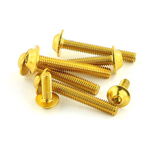 Materiale: alluminio 6063-T6, più leggero dei bulloni in acciaio OEM, abbastanza duro, coppia M5>3N.M, M6>4.5N.M. Molto meglio di altre marche. Anodizzato all'oro.