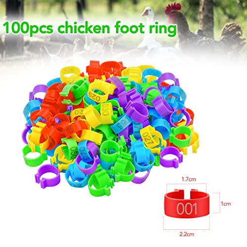 Xiumeso Anelli per Galline Anelli per Coscia di Pollo Multicolori Anelli per Gambe di Pollame Identificazione Numerati Anelli Clip per Pollo Anatra Piccione (100 Pezzi)