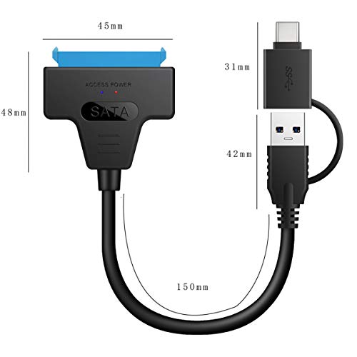 Cavo adattatore per laptop da USB 3.0 tipo C Maschio a Hard Disk driver 2,5” SSD SATA 22 pin, per Macbook e laptop, la velocità di trasferimento dell'interfaccia USB 3.0 super veloce può raggiungere i 5 Gb/sec (max)