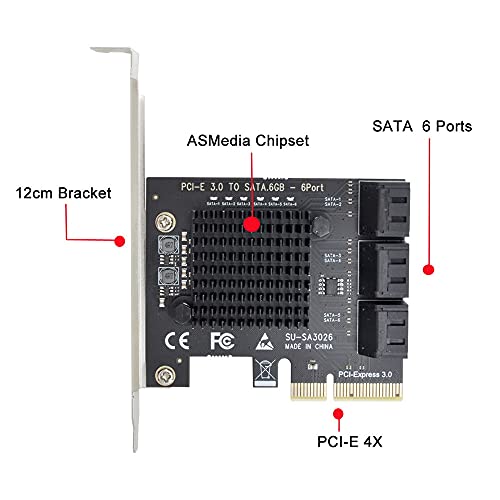 Xiwai Adattatore SATA PCI-E 6 Porte SATA 3.0 a PCI Express x4 Scheda di espansione SATA3.0 PCIe PCI-e SATA Controller per HDD ASMedia Chipset