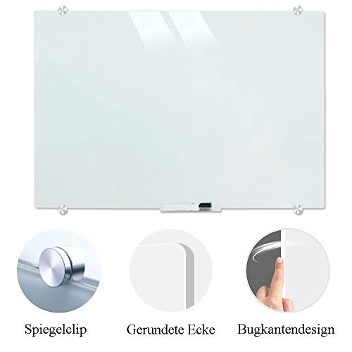 XIWODE Lavagna magnetica in vetro di sicurezza, lavagna magnetica, lavagna magnetica scrivibile e magnetica, lavagna magnetica senza cornice, bacheca con vetro di sicurezza, 90 x 60 cm