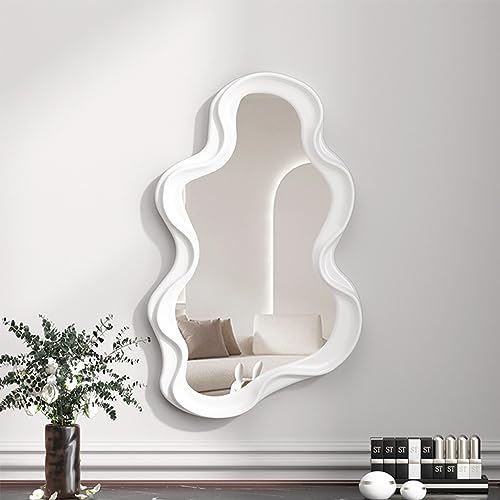 Xixi-home Specchio da parete irregolare, 2023, specchio ondulato, specchio da parete con gancio, per camera da letto, 26 cm x 41 cm, per bagno, camera da letto, soggiorno, bagni (bianco 2)
