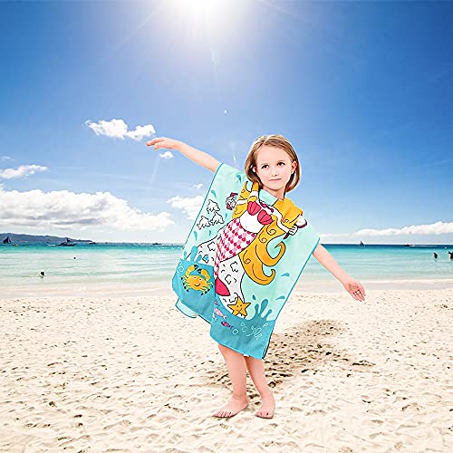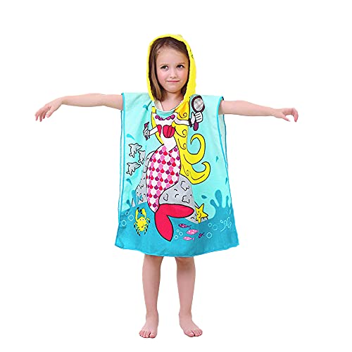 XiXiRan Asciugamano Poncho da Bambino, 100% Cotone Poncho Mare Bambino Poncho Asciugamano da Bagno Bambino Accappatoio a Poncho Bambini col Cappuccio per la Piscina Spiaggia Casa (Sirena)