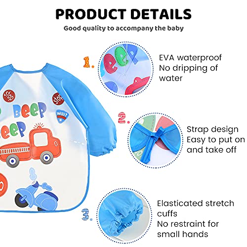 XiXiRan Bavaglino Manica Lunga, 4 Pcs Bavaglini Impermeabili con Maniche, Grembiule Pappa Bambini, Bavaglini Neonato con Maniche, Bavaglini Maniche Unisex, Giocare e Mangiare Piccoli da 6 ~36 Mesi