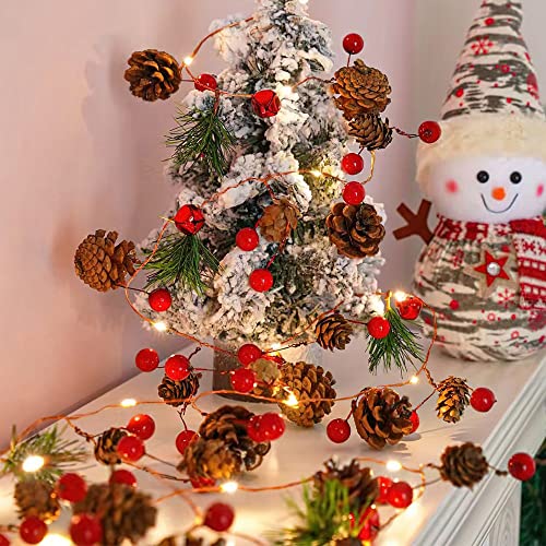 XiXiRan Ghirlanda Luminosa Pigne abete rosso, ghirlanda di pigne di natale con luci a led stringa luci led 2 metri decorazioni natalizie (Senza batterie)